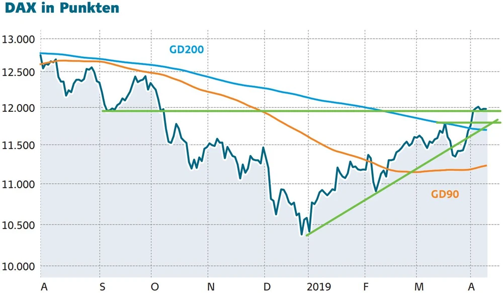 Angesichts der Brexit-Problematik überrascht es nicht, dass der DAX die wichtige 12.000-Punkte-Marke nicht gleich im ersten Anlauf überwindet. Die Gewinnmitnahmen halten sich allerdings auch in Grenzen, was ein positives Zeichen ist. Wie DER AKTIONÄR positioniert ist beziehungsweise wie Anleger sich in dieser Phase verhalten sollten, erfahren Sie im aktuellen "DAX-Check" bei DER AKTIONÄR TV.