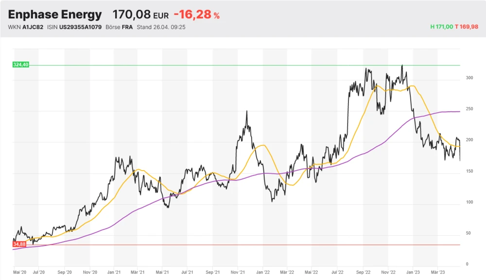 Enphase rechnet im zweiten Quartal mit Umsätzen in der Größenordnung zwischen 700 und 750 Millionen Dollar. Die höheren Konsensschätzungen der Analysten von knapp 773 Millionen und der Umsatzrückgang um neun Prozent in den USA sorgten dafür, dass die Aktie nachbörslich knapp 19 Prozent verliert.
