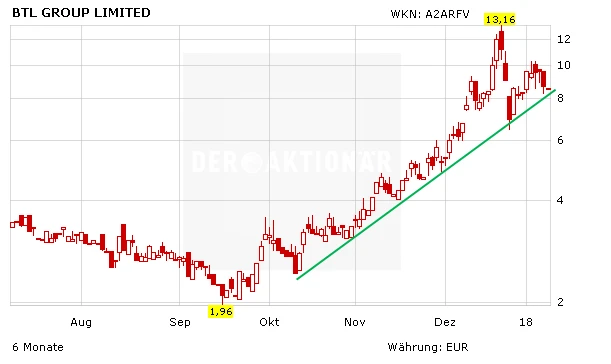 Nach der rasanten Kursrallye ist die aktuelle Kursschwäche völlig normal. Es handelt sich um ein sehr volatiles Papier und der Markt wartet schon länger auf einige Neuigkeiten. Manche Anleger verlieren hier schnell die Geduld. Neuigkeiten sollte es aber bald geben. BTL will 2018 weltweit expandieren und neue Kooperationen mit großen Konzernen eingehen.