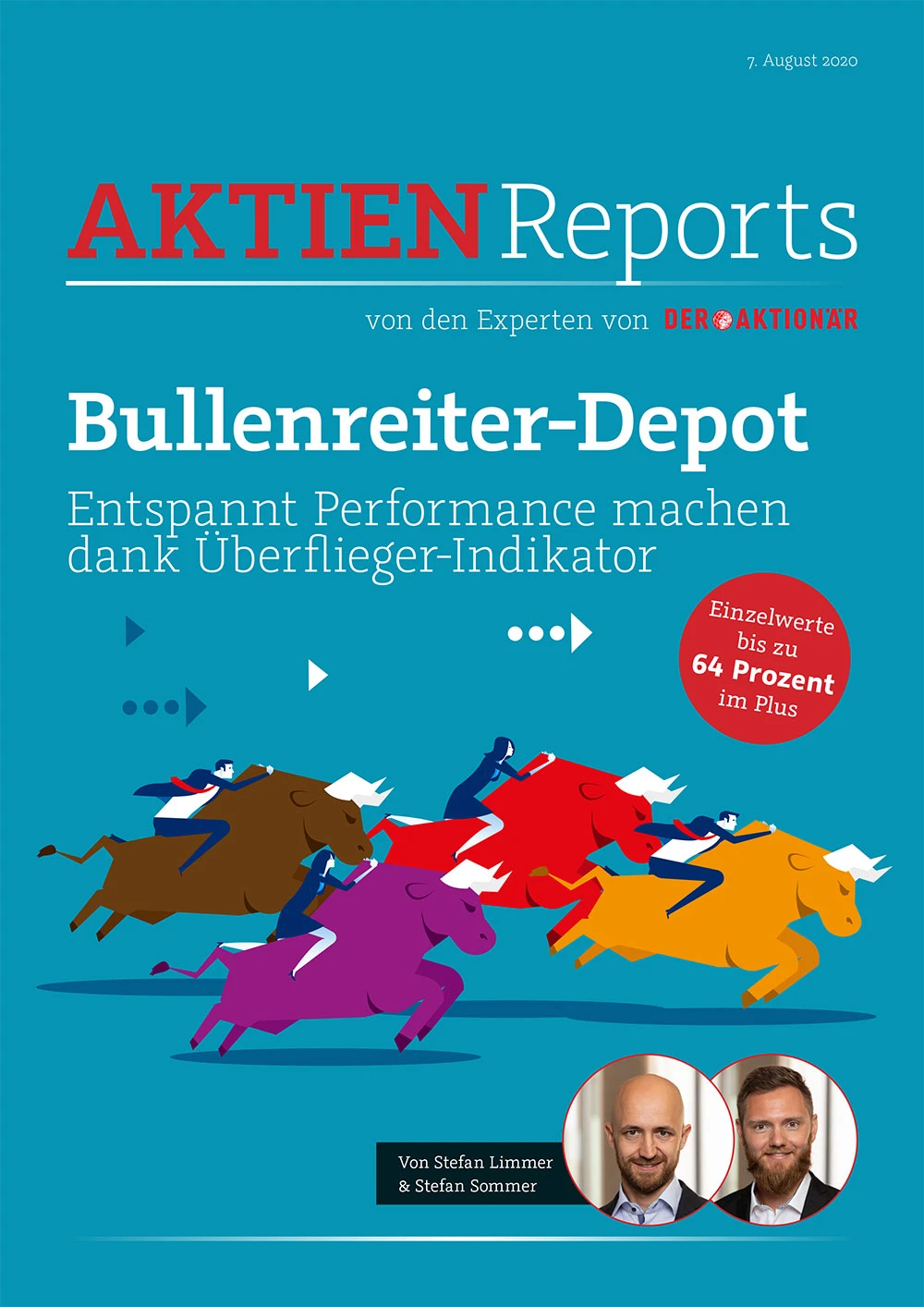Im Bullenreiter-Depot finden Anleger zwei Portfolios. Zum einen wird der HDAX nach den Bullenreiter-Kriterien durchforstet, zum anderen der Nasdaq 100. Beide Portfolios notieren seit Auflage im April zweistellig im Plus. In der aktuellen Ausgabe können sich die Leser über insgesamt fünf Käufe und zwei Verkäufe freuen. Damit werden die Portfolios neu ausgerichtet. Die brandaktuellen Käufe dürften bereits in kurzer Zeit für einen weiteren deutlichen Performance-Schub sorgen.