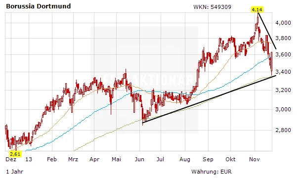 Um sich alle Möglichkeiten offen zu halten, sich für das Achtelfinale der Champions League zu qualifizieren, muss der BVB heute Abend gegen Neapel einen Sieg einfahren. Sollte der BVB in der Gruppenphase der Champions League ausscheiden, droht der Aktie ein weiterer Rücksetzer. Viele Analysten haben in ihren Schätzungen nämlich zumindest das Erreichen des Achtelfinales mit einbezogen.
