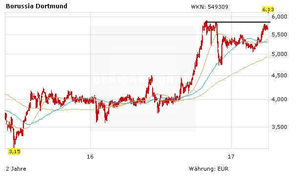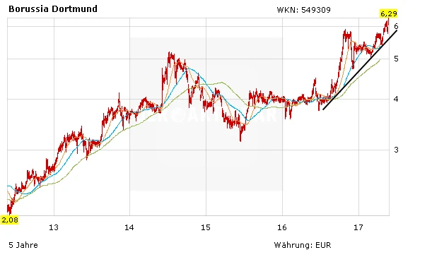 Die BVB-Aktie ist nach wie vor ein Kauf! Kursziel 7,50 Euro. Die Juve-Aktie ist allerhöchstens etwas für Zocker. Ein paar Tage vor dem Champions-League Finale am 3. Juni in Cardiff gegen Real Madrid kann eine Spekulation gewagt werden. Fährt Juve den Titel ein, könnte das Papier noch einmal Fahrt aufnehmen.