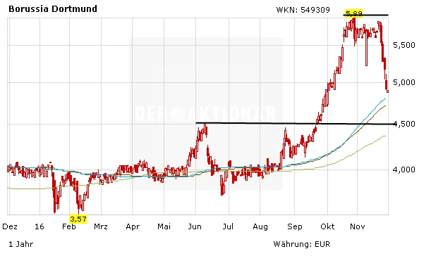 Die BVB-Aktie steckt nach der rasanten Aufwärtsbewegung noch immer in der Konsolidierung fest. Am Dienstagging es sogar wieder unter die psychologisch wichtige Marke von 5,00 Euro nach unten. Zugegeben, gegen Eintracht Frankfurt haben sich die BVB-Kicker nicht unbedingt mit Ruhm bekleckert. Und dennoch sollten Aktionäre kein Stück aus der Hand geben.