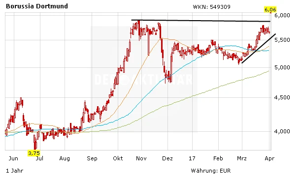 Es bleibt dabei: Der BVB hat in den letzten Jahren gezeigt, dass der Club über eine exzellente Scouting–Abteilung verfügt. Die Aktie ist nach wir vor zu günstig. Der Börsenwert von knapp 540 Millionen Euro spiegelt den Wert des Clubs nicht ansatzweise wider. Auch in der kommenden Saison können sich die hochtalentierten Kicker in der Königsklasse auf der großen Fußballbühne präsentieren. Das wird die Marktwerte von Weigl, Dembélé, Guerreiro und Co. noch weiter in die Höhe klettern lassen. Das Kursziel bleibt 7,50 Euro.