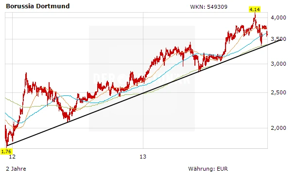 Die Verletzungsmisere bei Borussia Dortmund und sportliche Misserfolge haben die Aktie zuletzt bis auf 3,57 Euro zurückfallen lassen.