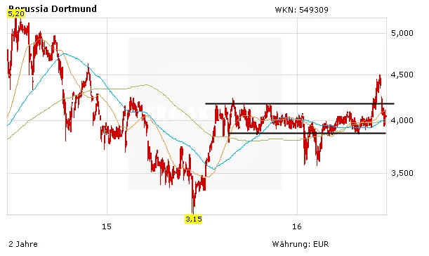 Sollte Mkhitaryan einen Wechsel durchsetzen, so wäre das kurzfristig sicherlich schlecht für die Aktie. Dann würde sich aber eine interessante Nachkaufchance ergeben. Mehr zur Bewertung der BVB-Aktie lesen Sie hier. Das Papier glänzt seit einigen Tagen jedoch mit Relativer Stärke. Jeder Rücksetzer wird sofort wieder mit Käufen beantwortet. Anleger platzieren ein Abstauberlimit bei 3,99 Euro.