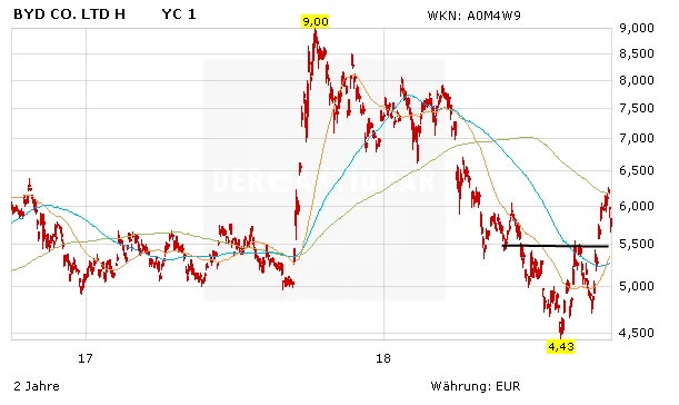 Es bleibt dabei: BYD ist ein breit aufgestellter Automotive-Konzern mit Standbeinen in spannenden Wachstumsmärkten. Der Konkurrenzkampf wird stärker, keine Frage. Mit Geely, Byton und NIO hat BYD im Heimatmarkt ernst zu nehmende Konkurrenz. Auch in Sachen Batterieproduktion muss BYD nicht nur auf CATL aufpassen. Aktie halten! Stoppkurs 4,65 Euro.