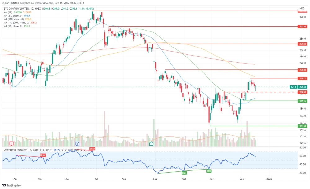 Die US-Notenbank löste mir ihrer Zinsentscheidung keine Freudensprünge bei den Marktteilnehmern aus. Im Gegenteil, die Fed hat ihre Entschlossenheit bekräftigt, auch in 2023 weitere Zinserhöhungen vorzunehmen, wenn es die Situation erfordert. Trotzdem legte die BYD-Aktie in den vergangenen Tagen weiter zu. Diese Marken sind jetzt für Anleger wichtig.