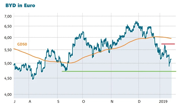 DER AKTIONÄR sieht in BYD auf lange Sicht eine spannende, wenn auch riskante Investition im Bereich der Elektromobilität. Die Gesellschaft ist gut positioniert und hat mit der eigenen Batteriefertigung einen Wettbewerbsvorteil gegenüber vielen Konkurrenten. Anleger sollten dennoch den Stopp bei 4,65 Euro beachten.