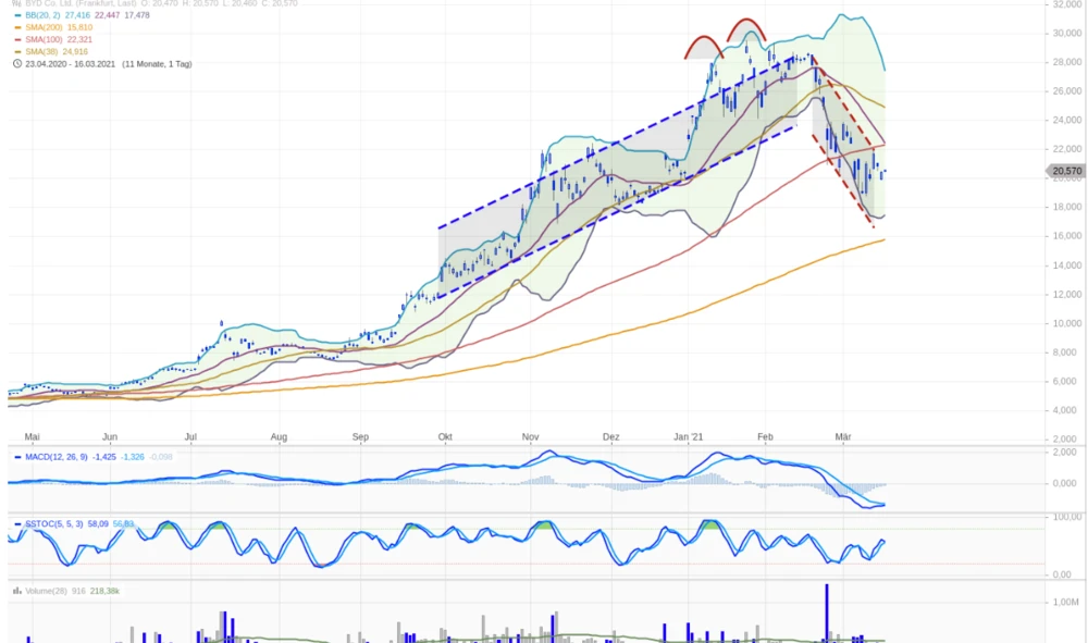 "Eine wichtige Signallinie stellt dabei die Marke von 20,57 Euro dar. Überschreitet BYD diese Hürde, dann wäre auch der kurzfristige Abwärtsmodus verlassen."
