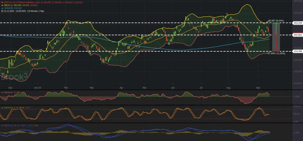 „Die Aktie von BYD steht wohl kurz vor einem deutlichen Absacker. Die Unterstützung bei 242,68 HKD wurde zuletzt binnen kurzer Zeit sechsmal getestet.
