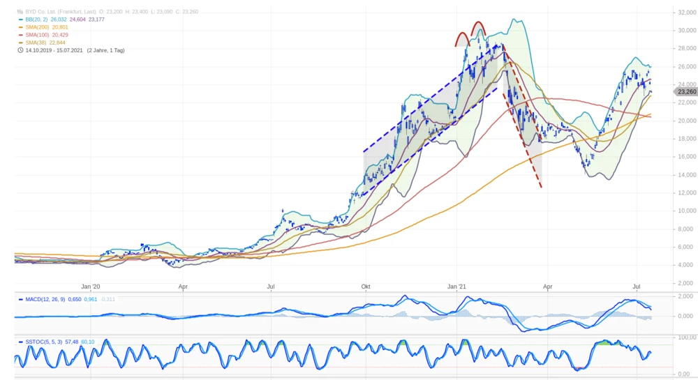 Aus technischer Sicht allerdings hat die BYD-Aktie zuletzt etwas an Power verloren. Zuletzt wurde der kurzfristige Aufwärtsmodus verlassen. „Das Obere Bollinger-Band war der erwartete „Deckel“ bei rund 26 Euro. Im Zuge dessen kam es auch zur Konsolidierung bis knapp 23 €uro. Nun stützt das Untere Bollinger-Band auf diesem Niveau. Die Markttechnik zeigt sich divergent. Die Slow-Stochastik generiert ein kurzfristiges Verkaufssignal. Der Trendfolger MACD deutet darauf hin, dass die aktuelle Konsolidierung noch mittelfristig andauern könnte. Übergeordnet ist aber alles noch „im Lot“. Um gegen unerwartete Einbrüche gewappnet zu sein, bieten sich trotzdem Stopps im Bereich 22,7 €uro an. Hier wäre dann auch besagter Kurzfristtrend verlassen. Der Ichimoku-Indikator zeugt weiterhin von langfristiger Trendstärke“, sagt Charttechnik-Experte Martin Utschneider von Donner & Reuschel.