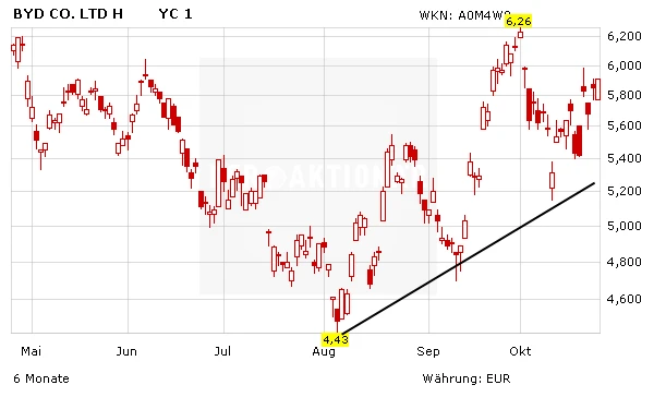 Zuletzt drückte eine Verkaufsempfehlung der UBS mit Kursziel 3,20 Euro auf den Kurs von BYD. DER AKTIONÄR beurteilt das Gesamtpaket bei BYD nach wie vor positiv: China setzt mehr und mehr auf die Elektromobilität. Die Regierung wird alles dafür tun, die Stromer mit Subventionen zu pushen.