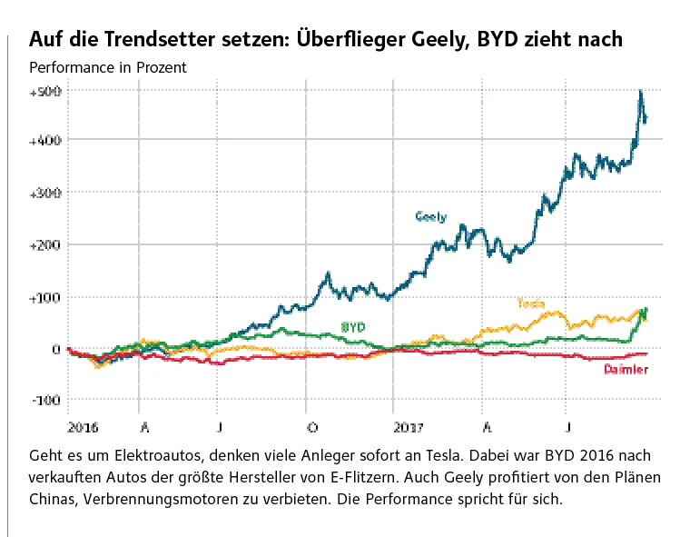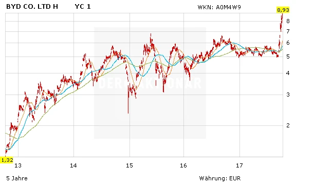 JP Morgan Analyst Nick Lai hob vor wenigen Tagen das Kursziel für die BYD-Aktie auf 100 HongKong-Dollar an. Umgerechnet sind das rund 10,40 Euro. BYD könnte mit seinen neuen Modellen positiv überraschen, so Analyst Lai. Zudem sieht Lai BYD in einer guten Ausgangsposition für die bevorstehende Abschaffung von Autos mit Benzin- oder Dieselantrieb. „Die Positionierung von BYD ist gut und die Zukunftsaussichten sehen vielversprechend aus“, sagt auch Asienexperte Andreas Lipkow.