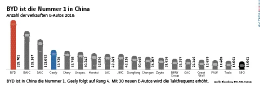 2019 will die Mannschaft von BYD-Chef-Wang Chuanfu 650.000 Autos verkaufen. Das wäre ein Plus von 25 Prozent. Der Großteil der verkauften Flitzer wird einen elektrischen Antrieb haben, Gut möglich, dass BYD die Zahl seiner verkauften New Energy Vehicles (Elektroautos und Hybride) im Vergleich zum Vorjahr verdoppeln kann. Zur Erinnerung: 2018 wurden von den NEVs 227.000 verkauft.