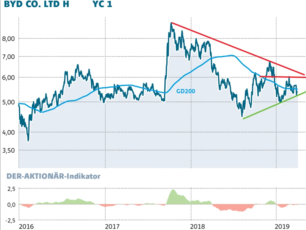 Die Margen für 2018 waren schwach, der Ausblick jedoch ist gut. Die Aktie hat nach den schwachen letzten Tagen wieder nach oben gedreht. BYD hat im Vergleich zur Konkurrenz den Vorteil, die Batterien für seine Elektroflitzer selbst zu fertigen. Ein Alleinstellungsmerkmal. Dagegen sind Daimler, BMW und Co auf die asiatischen Hersteller LG Chem, CATL und Samsung SDI angewiesen. Keine gute Ausgangs- und sicherlich auch keine gute Verhandlungsposition für die deutschen Autobauer.