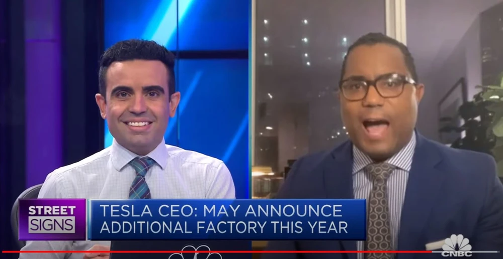 Der CNBC-Moderator erinnert Gordon Johnson daran: Sie sagen seit Jahren immer das Gleiche. Doch Tesla werde offenbar nicht wie ein normaler Autohersteller bewertet, sondern sei eine Wette auf neue Technologien und habe etwa seine eigene Software-Architektur.