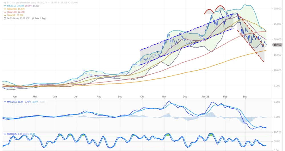 Nach der starken Korrektur nähert sich die BYD-Aktie der wichtigen 200-Tage-Linie. Die Zahlen für das Jahr 2020 konnten der Aktie keinen Rückenwind verleihen. Der Gewinn lag unter den Erwartungen. Wie geht es mit dem Papier weiter?