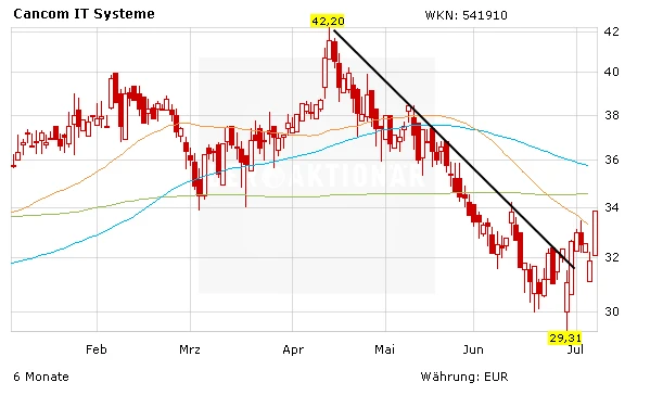 Endlich hat sich Cancom-Aktie wieder aufgerappelt. Nach langer Durststrecke ohne jeglichen Newsflow von Unternehmensseite und einem Rücksetzer von 42,20 Euro bis auf 30,00 Euro, zeigt die Cancom-Aktie endlich wieder Lebenszeichen. Unter anderem hat das Düsseldorfer Bankhaus Lampe die Einstufung für Cancom auf "Kaufen" mit einem Kursziel von 41 Euro belassen. Analyst Wolfgang Specht nahm das Papier des IT-Dienstleisters neu in die Empfehlungsliste "Alpha List" auf.