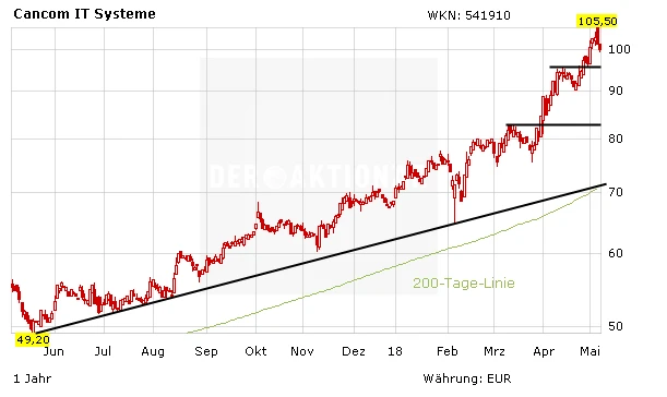 Zuletzt hat DER AKTIONÄR bereits via "Börse App" zu Gewinnmitnahmen nach dem fulminanten Anstieg geraten. Ohne Frage, langfristig zählt Cancom zu den großen Profiteuren der Digitalisierung, das Geschäft brummt. Kurz- bis mittelfristig dürfte allerdings die Luft raus sein. Interessierte Anleger warten einen größeren Kursrücksetzer ab.
