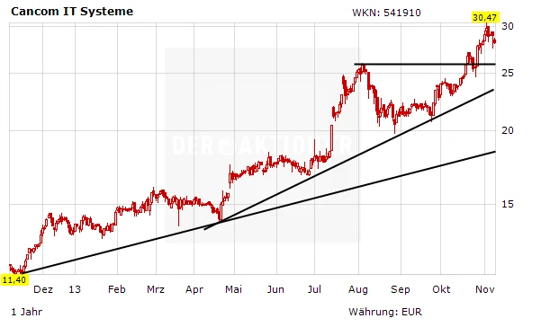 Der Münchener IT-Dienstleister Cancom hat die endgültigen Zahlen für die ersten neun Monate bekannt gegeben und untermauert mit dem guten Geschäftsverlauf den Wachstumskurs bei Umsatz und Ergebnis. Für das Gesamtjahr peilt das Management neue Rekorde an.