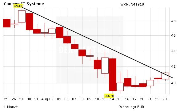 Die Zahlen zum zweiten Quartal von Cancom fanden an der Börse wenig Anklang. Auch von Analystenseite hagelte es Kurszielreduzierungen. Dennoch: Langfristig dürfte der IT-Dienstleister weiter von der Digitalisierung profitieren. Im Bereich von 40 Euro bildet der TecDAX-Titel aktuell einen Boden aus. Trading-Chance für Mutige mit Stopp bei 38,70 Euro.