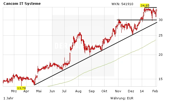 Der IT- und Cloud-Computing-Spezialist Cancom gehört heute mit einem Plus von 2,8 Prozent zu den Top-Gewinnern im TecDAX. Auslöser ist ein Interview in der Börsenzeitung, wonach die Cancom-Aktionäre nach der erfolgreichen Übernahme von Pironet 2014 mit weiteren Übernahmen rechnen können.