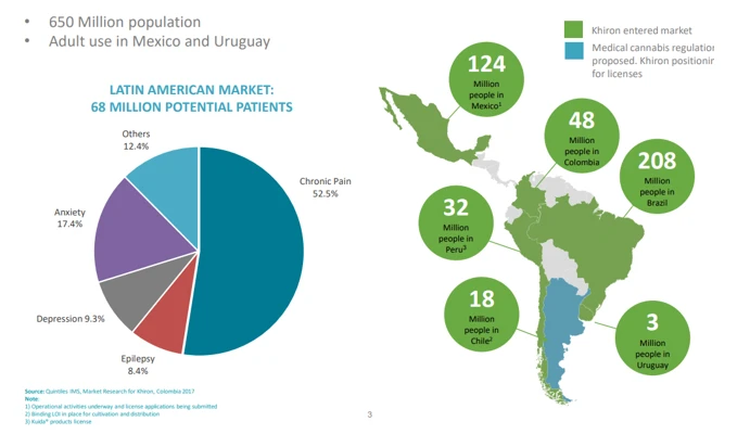 Zur Erinnerung: Khiron ist als First Mover in Kolumbien präsent. Ein Markt mit einem Potenzial von 48 Millionen Einwohnern. Zum Vergleich: Kanada hat eine Bevölkerungszahl von 37 Millionen Menschen. Der Gebrauch von Cannabis für medizinische Zwecke wurde in Kolumbien schon 2016 gestattet.
