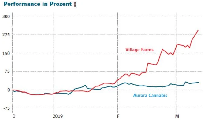 Durch die Kooperation mit der Cannabis-Firma Emerald Health und dem 50/50 Joint Venture „Pure Sunfarms“ ist Village Farms in die Cannabis Produktion eingestiegen. Diese will Vorstand Michael DeGiglio in den nächsten Jahren peu a peu ausbauen. Nach Ansicht von DeGiglio hat Village Farms das know how und das Potenzial in den nächsten Jahren unter die Top 10 der Cannabis-Hersteller weltweit aufzusteigen.
