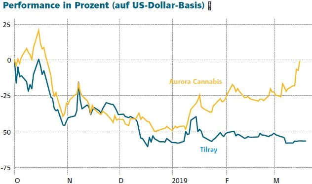 Während zahlreiche Aktien im Cannabis-Sektor zuletzt ordentlich durchstarten konnten, scheint die Aktie von Tilray wie festgenagelt. Und auch nach den jüngsten Zahlen zählt DER AKTIONÄR das Papier nicht zu seinen Favoriten. Im Vergleich zur Konkurrenz ist das Papier nach wie vor nicht günstig. Die Aktie von Tilray gehörte im vergangenen Jahr zu den absoluten Überfliegern im Cannabissektor. Die Aktie ging für 17 Dollar im Sommer 2018 an die Börse und vervielfachte sich innerhalb kürzester Zeit auf 300 Dollar. Doch seitdem hat die Aktie eine massive Korrekturbewegung vollzogen. Weitaus besser sieht derzeit beispielsweise die Aktie von Aurora Cannabis aus, die vor Kurzem ein massives Kaufsignal generiert hat.