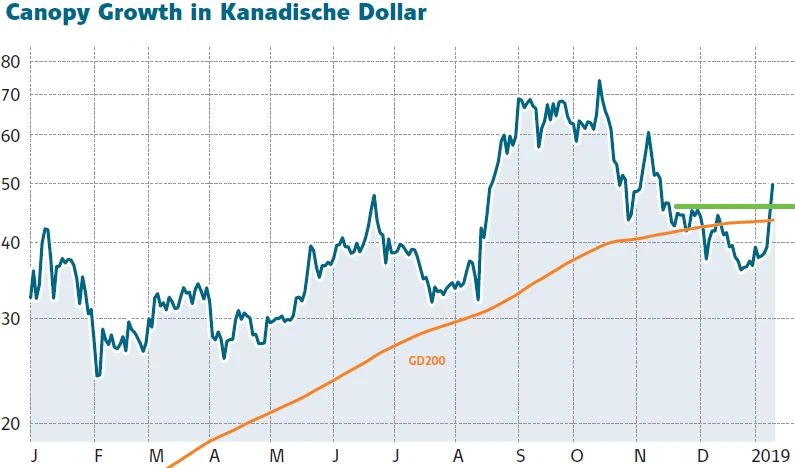 Was für ein starker Jahresauftakt bei den AKTIONÄR-Favoriten der Cannabis-Branche Canopy Growth und Aurora Cannabis. Nachdem beide Werte bereits am Mittwoch ordentlich zulegen konnten, setzen sie ihre Aufholjagd am Donnerstag fort. Canopy Growth ging in Toronto mit einem Plus von zwölf Prozent auf 49,82 Kanadische Dollar aus dem Handel, Aurora Cannabis mit einem Plus von 9,9 Prozent auf 7,88 Kanadische Dollar. Weitere Branchenvertreter wie Tilray oder Cronos Group verzeichneten immerhin noch ein kleines Plus von 0,9 beziehungsweise 1,1 Prozent.