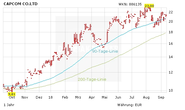 Wird „Monster Hunter: World“ in China zugelassen, wären zusätzliche Absätze in Millionenhöhe denkbar und eine Fortsetzung der Rallye wahrscheinlich. Auf diese spekulativen Chancen wies DER AKTIONÄR seine Leser bereits in Ausgabe 36/18 hin. Nachdem es in China von Behördenseite jedoch keine Neuigkeiten gab, können risikofreudige Anleger hier weiterhin zugreifen. DER AKTIONÄR setzt das Ziel auf 27,00 Euro; Stopp liegt bei 15,00 Euro.