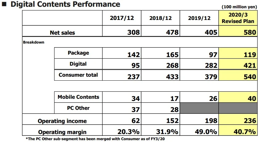 Der steigende Gewinn bei gleichzeitig sinkenden Umsätzen liegt an dem stetig wachsenden Anteil digitaler Verkäufe. Seit 2018 nehmen die physischen Umsätze ab, während die digitalen Verkaufszahlen mit einer höheren Marge steigen. Capcom erzielte 77,6 Prozent der Nettoverkäufe im Digitalvertrieb.