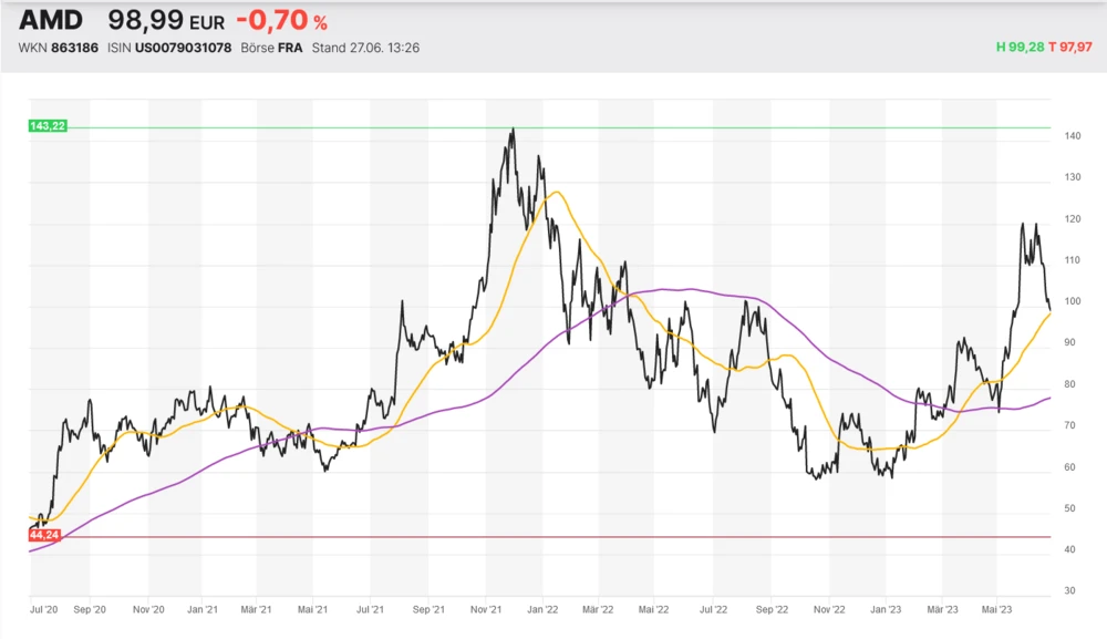 Es handelt sich dabei um das amerikanische Halbleiter-Unternehmen AMD. Das in Kalifornien ansässige Unternehmen entwickelt und vertreibt Computerchips, Mikroprozessoren, Chipsätze und Grafikprozessoren und steht somit in direkter Konkurrenz zum High-Flyer Nvida.