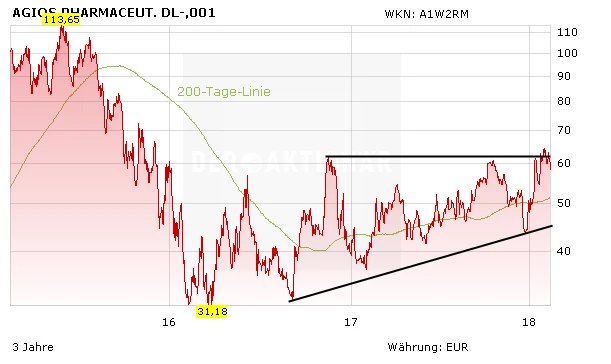 Im Vergleich zu anderen vielversprechenden Onkologie-Spezialisten ist die Agios-Aktie von den Höchstständen aus dem Jahr 2015 noch weit entfernt. Spekulative Anleger greifen zu und legen sich eine kleine Position ins Depot. Der Krebsspezialist ist mit einer Gewichtung von 4,2 Prozent die elftgrößte Beteiligung im Portfolio von BB Biotech, dem Basisinvestment im Biotech-Sektor.