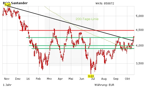 Bei der Banco Santander läuft es derzeit. Dass sehen auch die Analysten der Deutschen Bank so. Charttechnisch wird es jetzt spannend.