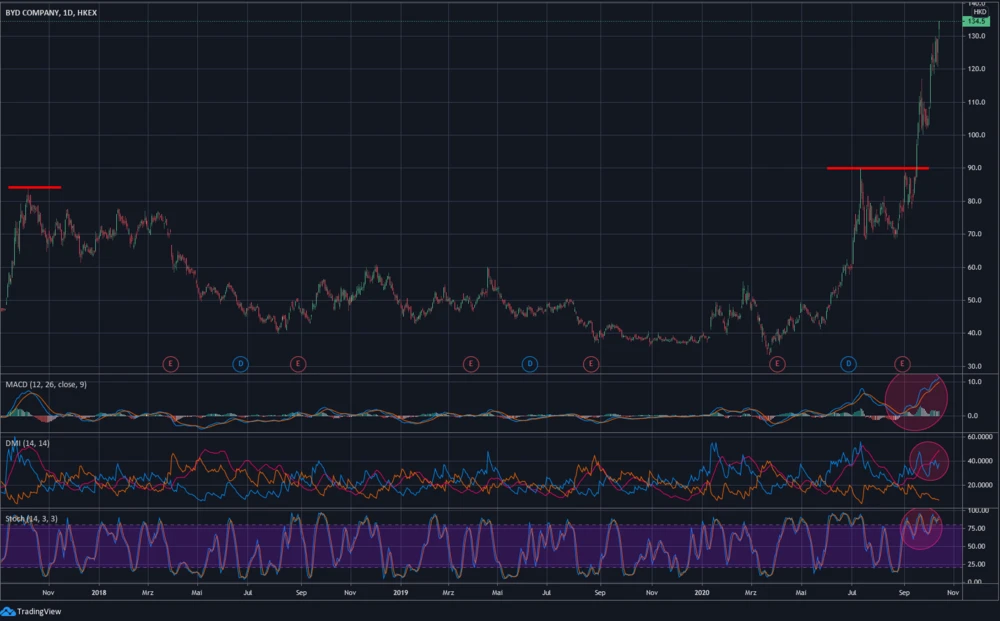 Für die Aktie des chinesischen Automobil- und Batterieherstellers sieht es richtig gut aus. Seit Jahresbeginn klettert der Wert steil nach oben und hat sich schon nahezu verdreifacht. In der vergangenen Woche hat die Aktie zwar kurz verschnauft, jetzt scheint der Höhenflug aber wieder weiterzugehen. Das müssen Sie nun beachten.