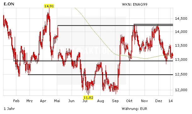 Die E.on-Aktie pendelt seit mehreren Tagen bei Kursen um 13,15 Euro. Angesichts der mauen Nachrichtenlage verwundert die impulslose Kursentwicklung nicht. Bis auf einige Spekulationen um die Reform der Energiewende hat es seit Jahresbeginn keine nennenswerten Nachrichten zum Energieversorger gegeben. Spannung verspricht derzeit dagegen das Chartbild.