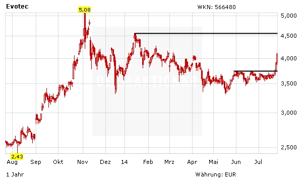 Ein Großteil der von der Nachrichtenagentur Bloomberg befragten Analysten ist für die weitere Kursentwicklung optimistisch und empfiehlt zum Kauf der Biotech-Aktie. Die Kurssteigerung der vergangenen Tage kommt nicht von ungefähr. Zuletzt überzeugte Evotec mit einem guten Newsflow, wie beispielsweise neuen Forschungskooperationen der Akquisition des britischen Auftragsforschers Euprotec und weiteren Meilensteinzahlungen.
