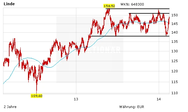 Der Kurs hat Mustergültig bei der Unterstützung im Bereich von 139,50 Euro wieder ins Plus gedreht. Kann zudem der Widerstand bei 151,00 Euro gebrochen werden, hat das Papier durchaus Potenzial bis zum Allzeithoch bei 154,80 Euro. Auch der Ausbruch aus Range auf neue Hochs ist durchaus möglich.