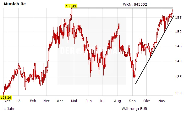 Die zuletzt ohnehin erfreuliche Kursentwicklung des DAX-Wertes setzt sich in einem freundlichen Marktumfeld weiter fort. Der Aufwärtstrend seit September ist nach wie vor intakt. Glückt nun auch der Sprung über das bisherige Jahreshoch bei 158,49 Euro, könnte der Kurs nochmals Fahrt aufnehmen. Der Weg nach oben wäre vorerst frei.