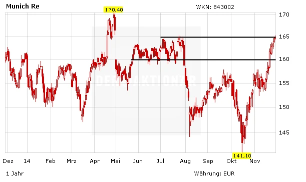 Das US-Analysehaus Bernstein Research hat das Kursziel für Munich Re von 152 auf 157 Euro angehoben, aber die Einstufung auf "Market-Perform" belassen. Der Markt schätze die Entwicklung des Segments Schaden/Unfall im kommenden Jahr nach wie vor zu optimistisch ein, so Analyst Thomas Seidl. Allerdings steige die Wahrscheinlichkeit, dass der Rückversicherer 2015 und 2016 Aktienrückkäufe tätigen werde, begründete er das neue Kursziel.