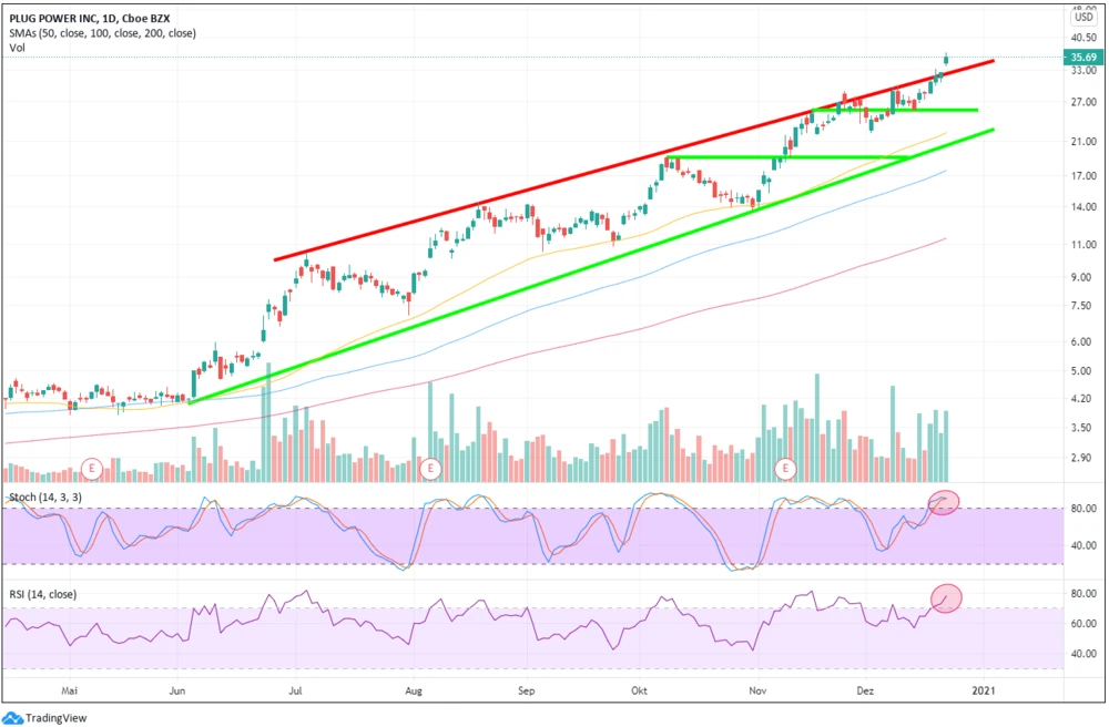 Der Hype um die Wasserstoff-Aktien reißt nicht ab. Die Politik ist dabei ein wichtiger Kurstreiber. Der Aufwärtstrend der Plug-Power-Aktie hat sich dadurch nochmals beschleunigt. Investierte Anleger bleiben dabei und lassen die Gewinne laufen.