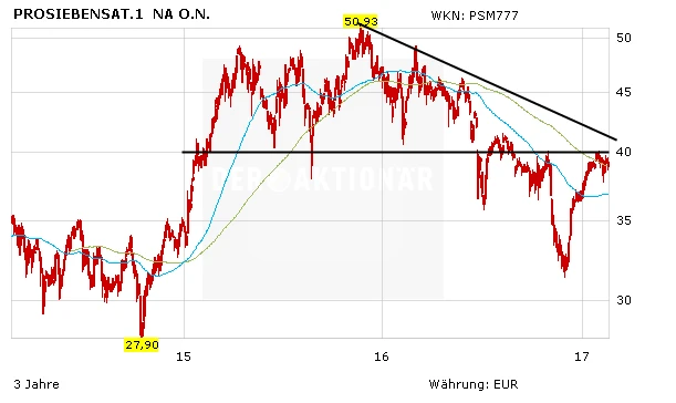 DER AKTIONÄR bleibt für die ProSieben-Aktie positiv gestimmt und traut dem Kurs auf Jahressicht eine Annäherung an das Allzeithoch oberhalb der 50-Euro-Marke zu. Investierte Anleger bleiben dabei. Auch Neueinsteiger können weiterhin zugreifen.