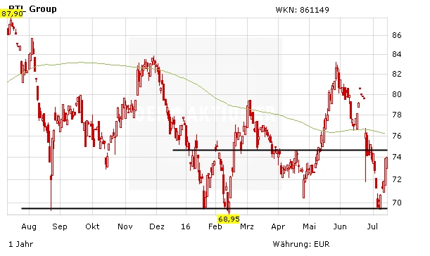 Beinahe punktgenau an der Unterstützung unterhalb der 70-Euro-Marke ist der Kurs zuletzt jedoch wieder nach oben gedreht. Seitdem hat die Aktie bereits wieder mehr als sechs Prozent aufgeholt und damit fast die Hälfte der Brexit-Verluste ausgeglichen. Nun gilt es, den Widerstand im Bereich von 74 Euro zurückzuerobern.