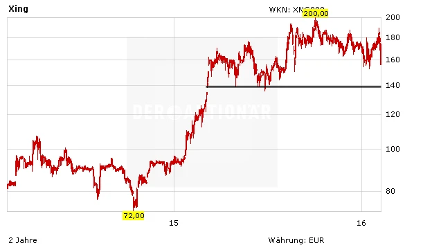 Neben den zuletzt belastenden Zahlen des US-Konkurrenten LinkedIn muss das Papier dem schwachen Gesamtmarkt Tribut zollen. Anleger gehen erst gar nicht das Risiko ein, ob die 140-Euro-Marke hält, sondern beachten den Stopp bei 147 Euro.