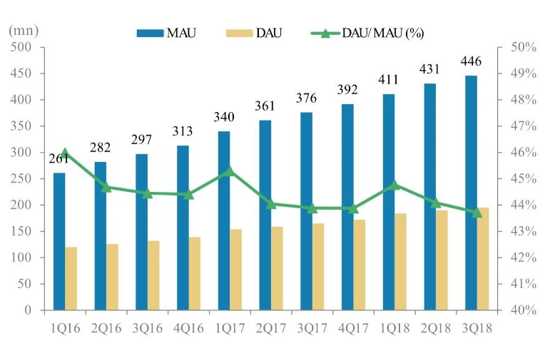 Weibo ist mit 446 Millionen monatlich aktiven Nutzern (MAU) und 195 Millionen täglich aktiven Nutzern (DAU) Chinas mit Abstand führender Kurznachrichtendienst. Das Unternehmen wird in westlichen Medien gerne mit Twitter verglichen.