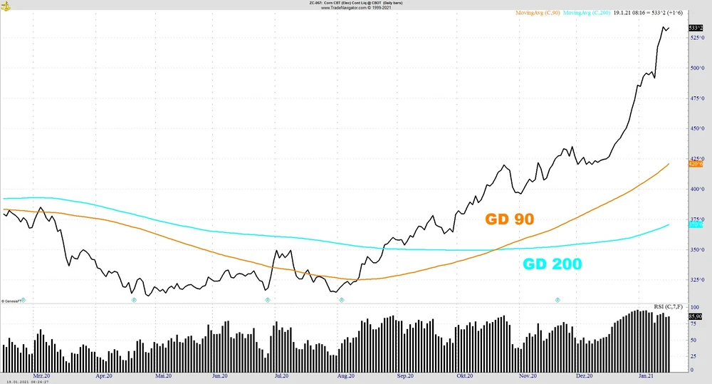 Die Positionierung der Produzenten mahnt uns zur Vorsicht. Wir nähern uns Preis-Levels die mittelfristig gerechtfertigt sein mögen, allerdings mit einer Geschwindigkeit die zu hoch ist. Rohstoff-Märkte neigen in Extremsituationen gerne zu Übertreibungen. Oft sind in der Vergangenheit nach massiven Kursanstiegen die Futures-Preise eingebrochen. Zu volatil sind die Wetterbedingungen in diesem Sektor um 100 prozentig verlässliche Vorhersagen zu wagen. In wenigen Wochen beginnt auch die Aussaat für die neue Ernte-Saison. Zudem ist fraglich ob China mit der gleichen Geschwindigkeit weitere Käufe tätigen wird. Es bleibt also spannend und extreme Preisbewegungen ermöglichen gute Trading-Opportunitäten.