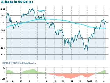 Alibaba ist mit KGV 40 (2019e) moderat bewertet. Das Wachstum und die Marktstellung rechtfertigen selbst höhere Kurse. Mit dem Sprung über 170 Dollar hat das Papier ein Kaufsignal generiert, jetzt könnte mittelfristig sogar das Allzeithoch in Angriff genommen werden.