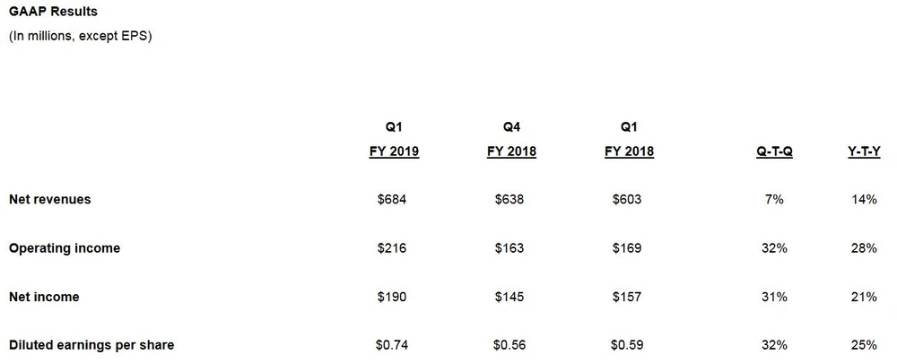 Xilinx veröffentlichte im ersten Quartal 2019 Rekordumsätze von 684 Millionen Dollar. Die Erlöse stiegen damit 14 Prozent gegenüber dem Vorjahresquartal und lagen über den Erwartungen der Analysten von 672 Millionen Dollar. Die Gewinne je Aktie stiegen um 25 Prozent auf 0,74 Dollar und übertrafen ebenfalls die Experten-Schätzungen von 0,73 Dollar.